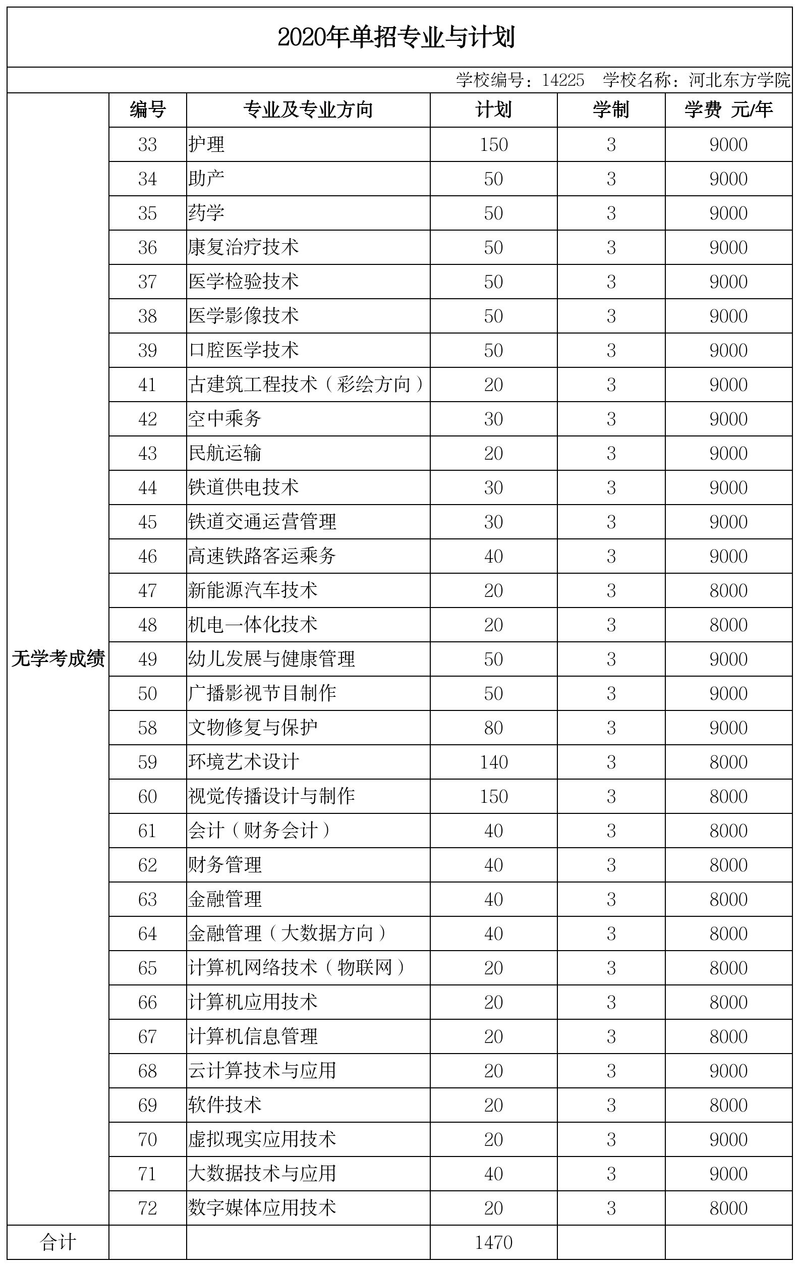2020年环球ug登录网站单招专业与计划(无学考成绩)