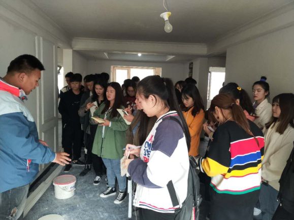 一是学生进工地——参观大师设计项目。在理论教学的基础上,带领学生到北京广华新城施工参观,在项目负责人带领下, 参观室内正在装修的设施, 边走边给同学们介绍温喷头、中央空调、电缆、天花板、报警控制、通风设备,主龙骨, 次龙骨的特点及作用.通过参观实践, 加深了同学们对专业理论知识的理解,学到了很多适用具体的施工知识,丰富了同学们的工作实践。