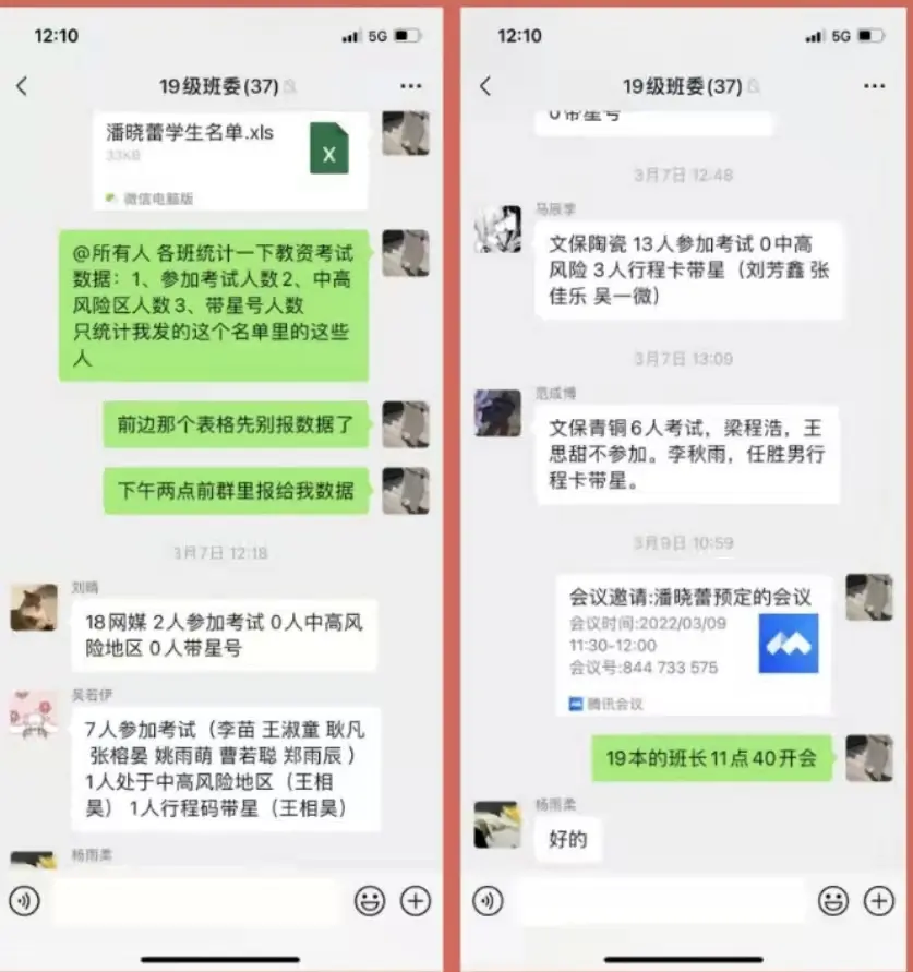“疫情就是命令,防控就是责任”,潘晓蕾老师及时传达上级和学校关于做好当前疫情防控的各项工作安排,向同学们传递疫情最新动态的同时,叮嘱他们不信谣不传谣,给予学生最大的心理安抚;对疫情严重地区的同学进行摸排与疏导工作,安抚学生心理,做好各项后勤保障工作,及时完成上级部门所有要求上报的各项信息。