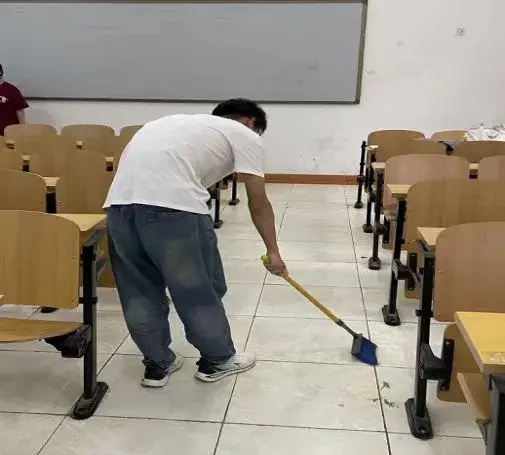 各位同学积极参与,齐心协力,认真清洁二楼每一间教室,以积极饱满的热情投身到打扫教室的卫生中,用自己的双手清扫教室每一个角落,检查教室桌椅损坏情况等。在成员们的共同努力下,教室变得干净整洁、焕然一新,窗明几净,桌椅整齐,用实际行动为校园学习环境的改善作出贡献。