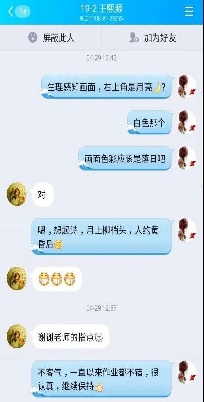 在教学过程中,师生共同配合,教学相长。课堂中我鼓励学生积极发言,紧随课堂内容的问答形式,可以使学生精准有效掌握学习内容,同时也使我在授课内容上能及时调整完善。每次课后我大都会布置作业练习,学生们积极认真完成作业并按时提交,通过学生作业阐述、教师作业评改和学生集体讨论等教学活动,师生在云端畅所欲言,亦成为了关系亲密的朋友,互相关心,共促进步。