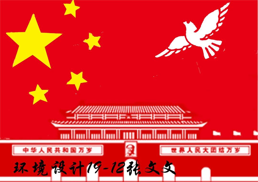 创作说明:一面鲜艳的五星红旗,表示着中华民族的生生不息;一只翱翔天际的白鸽,昭示着中国的和平安宁;1949年中华人民共和国的诞生,天安门成为中国国家的象征,信仰的象征。仰望夜空,明星共同交织星空,一笔一画连成,霎时星光璀璨,光芒万丈,交相辉映下照耀着昂首站立东方大陆上的雄鸡——中国,斗转星移,那变化莫测的星空向我传递着心中的四个字:爱我中华!