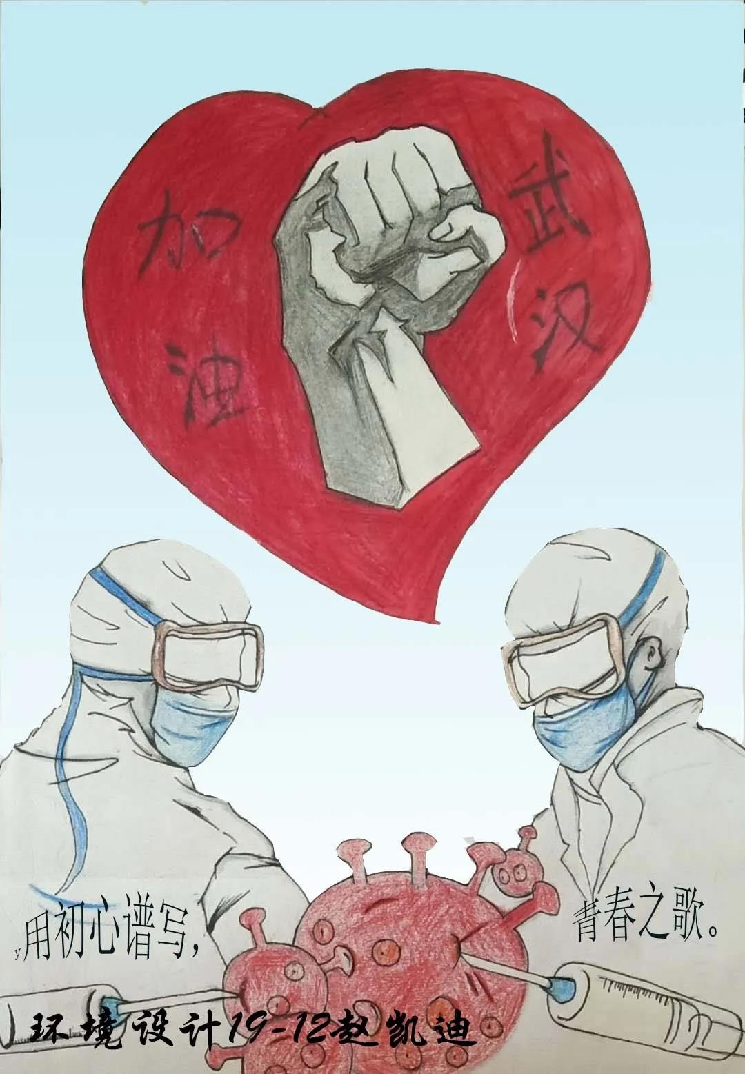 创作说明:加油武汉,同舟共济、共渡难关。简单的一声问候,其中却包含着中华儿女的殷切关怀与共同面对艰难险阻的决心。疫情就是命令,防控就是责任。国家危难面前,广大青年将本职工作同抗疫工作紧密结合,不畏艰险,勇往直前,彰显了青年担当,展现了青春风采。