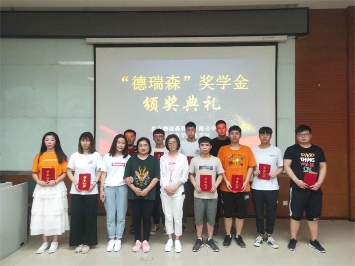 德瑞森奖学金的设定不仅表达了北京的瑞森科技有限公司对我校学生的支持,还传递了贵公司与我校建立友好合作关系的决心,更重要的是激励了众多学子的向上进取、努力成就更好的自己的决心。