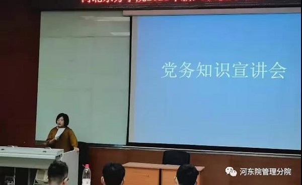 为进一步加强党支部标准化、规范化建设,吕雅坤老师结合自身经验,深入浅出、生动活泼地为大家阐释了党的建设的重要性,并对党的性质、宗旨和指导思想,入党流程这三个方面进行详细讲解。今后将继续切实担负起党员培养工作,严格坚持标准,严把党员质量,不忘初心,牢记使命,扎实做好党务工作。
