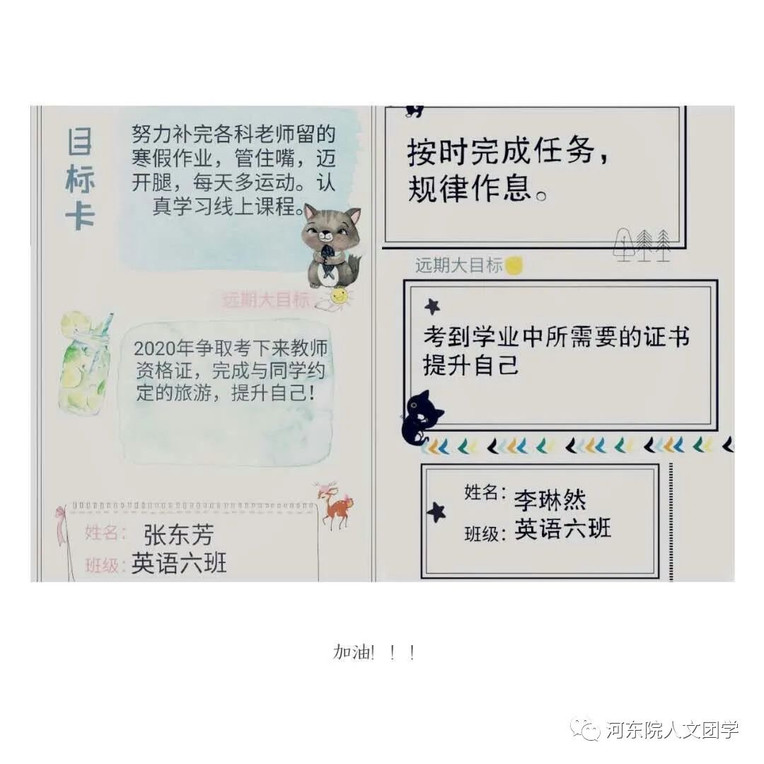 做好学习,约定未来,肩负国家重任。各班级学生填写了自己的目标卡,帮助广大学生对自己之前的学习、生活做全面梳理,为之后的学习做好合理规划,确立各个阶段的目标。