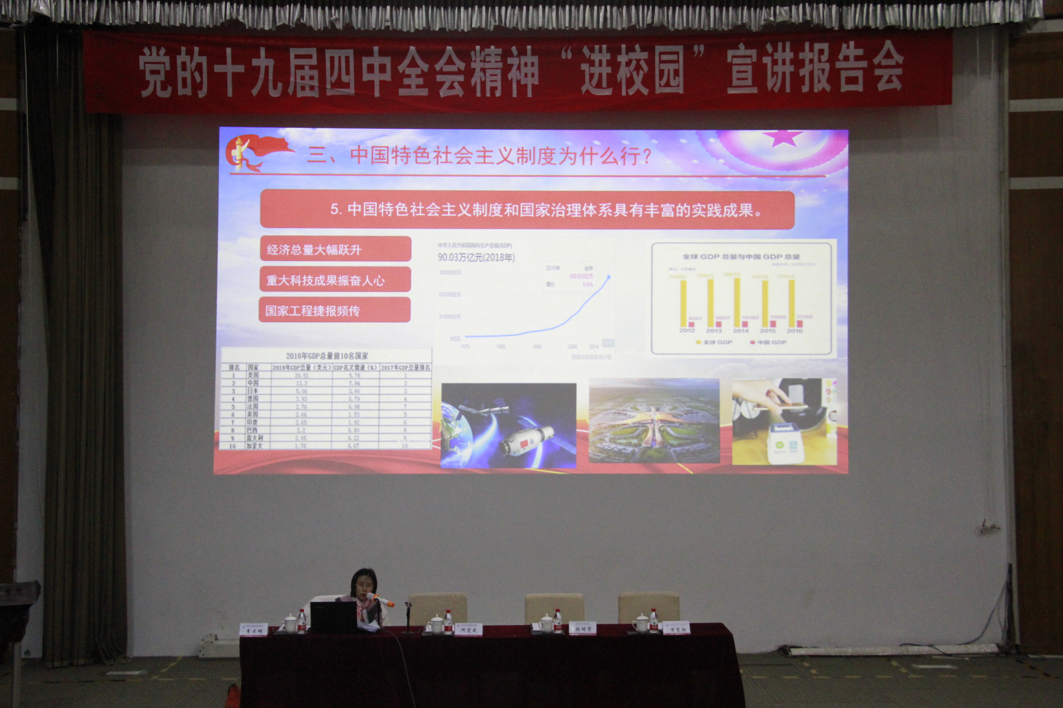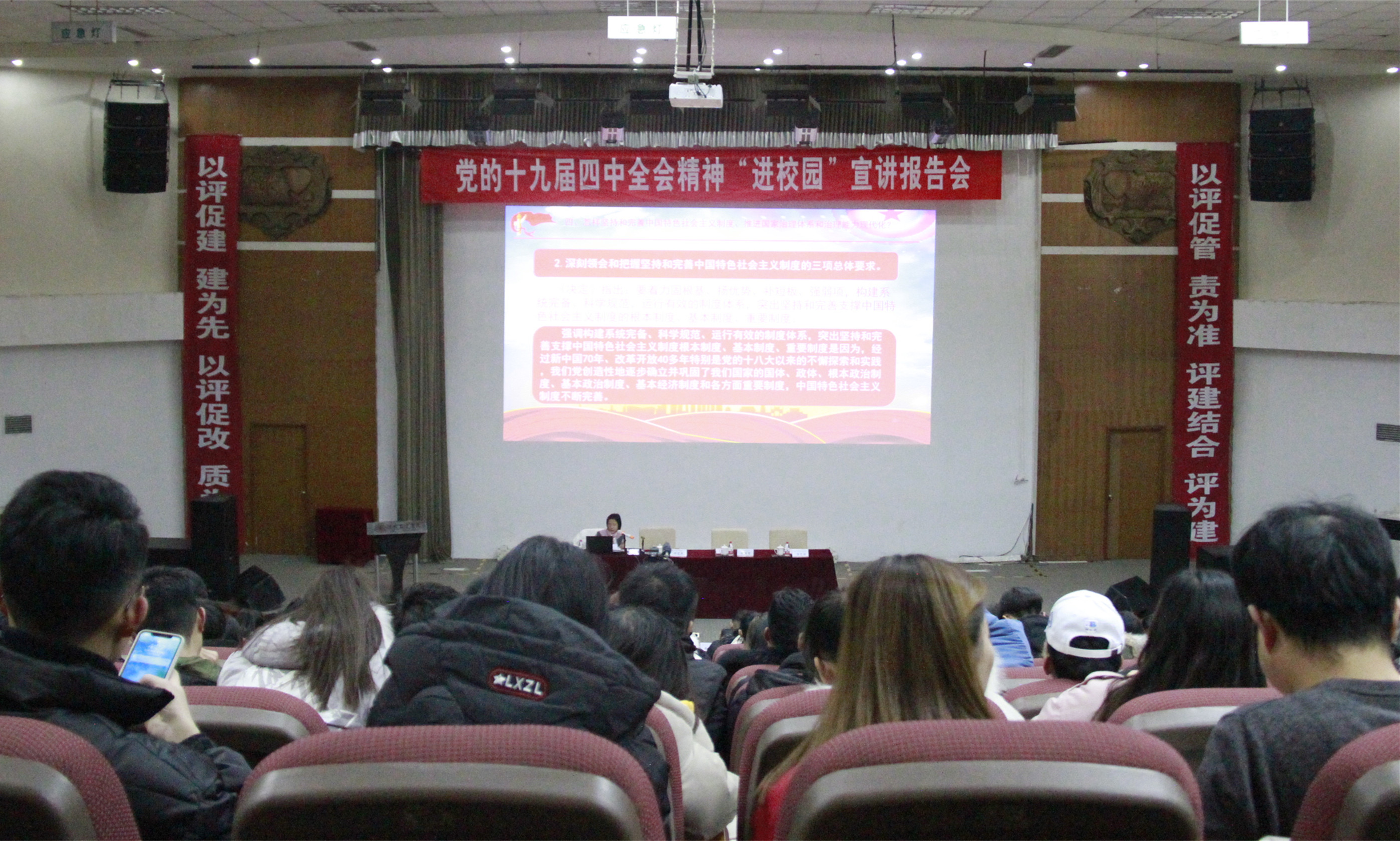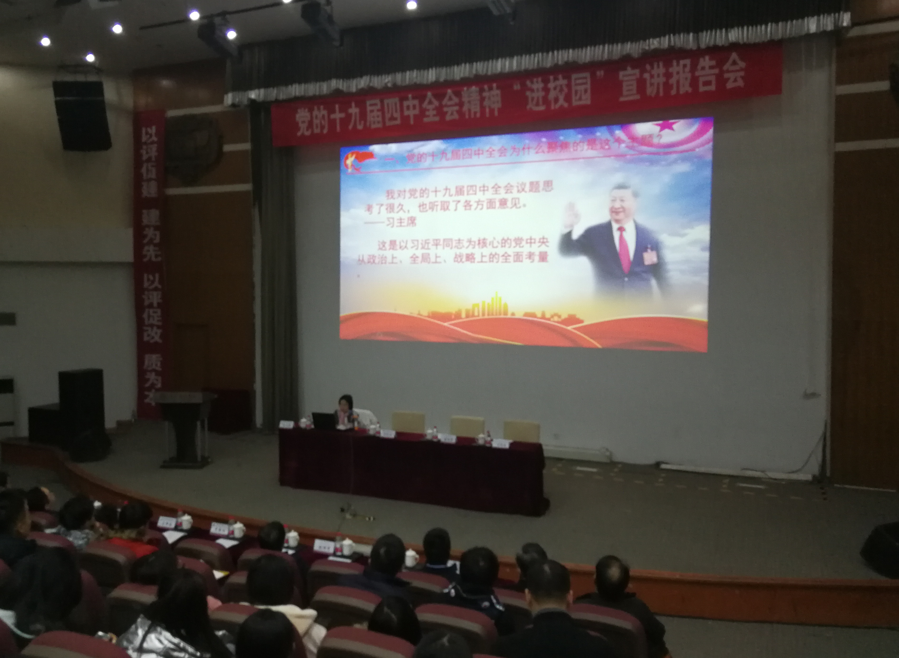 此次报告会取得了良好效果,把环球ug登录网站学习贯彻十九届四中全会的学习活动推向了高潮。廊坊市委宣传部、市委统战部、市社科联等有关部门负责同志和环球ug登录网站师生代表参加了报告会。