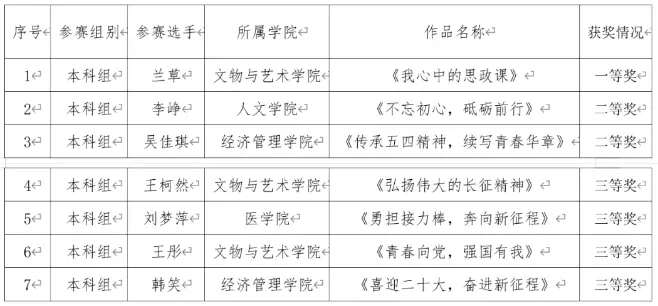 深入贯彻落实习近平总书记关于“大思政课”建设的重要指示批示精神,充分发挥高校思政课立德树人关键课程作用,坚持不懈用习近平新时代中国特色社会主义思想铸魂育人,引导学生深刻认识“两个确立”的决定性意义,增强“四个意识”,坚定“四个自信”,以实际行动迎接党的二十大胜利召开,由教务处、党委宣传部主办,人文与马克思主义学院承办的“青春献礼二十大·强国有我新征程”环球ug登录网站大学生讲思政课公开课展示活动已经活下帷幕。经教务处、人文与马克思主义学院思政教研室组成的评审小组对参赛作品进行了公平、公正、公开的评审,评选出一等奖1部、二等奖2部、三等奖4部。现将获奖名单公布如下: