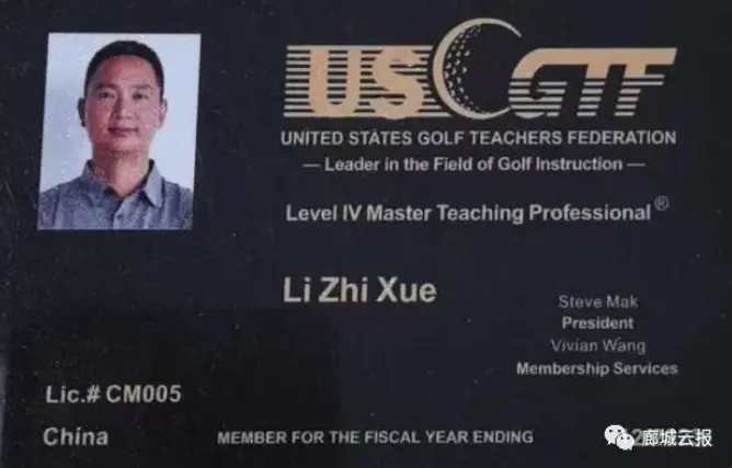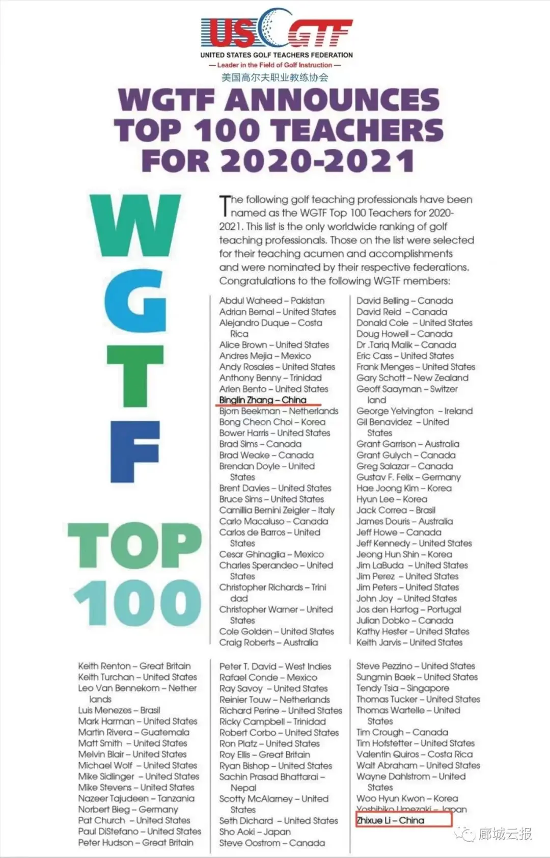 图:张炳麟和李志学两位美国高尔夫教练协会教官,被世界高尔夫教练协会评为2020-2021全球百佳教练。