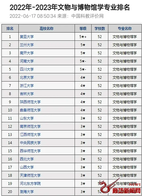 近日,中评榜发布了2022中国大学分专业竞争力排行榜,环球ug登录网站文物与博物馆学专业位列2022中国大学分专业竞争力排行第19位。