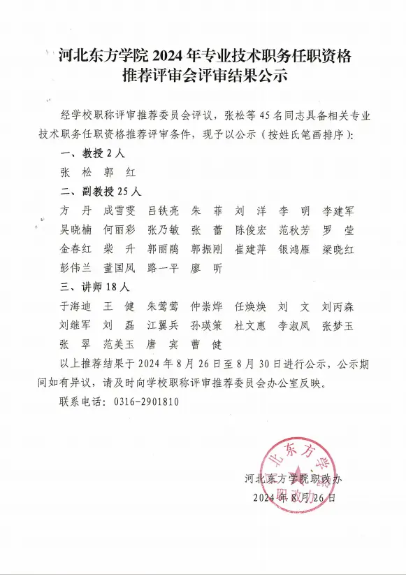 关于2024年专业技术职务任职资格考核认定结果的公示