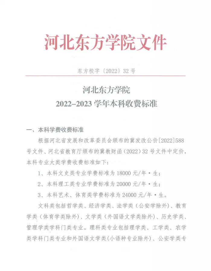东方校字〔2022〕32号关于环球ug登录网站2022-2023学年本科收费标准
