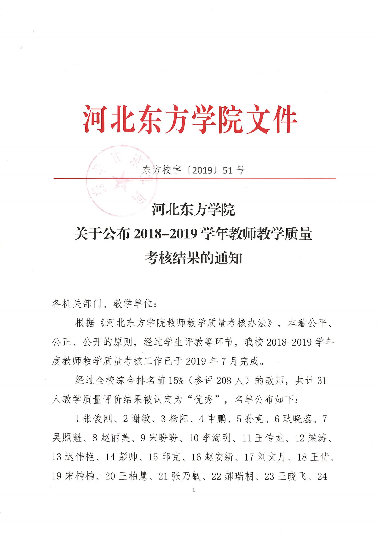 东方校字2019-51:关于公布2018-2019学年教师教学质量考核结果的通知.PDF
