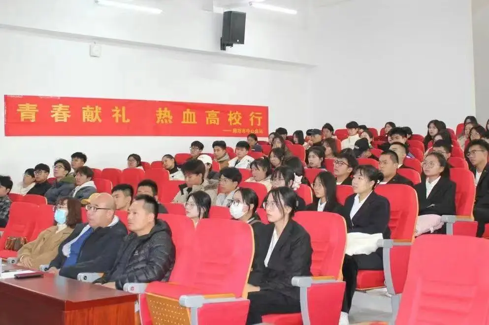 为深入贯彻《河北省献血条例》,向我校学生普及无偿献血政策及知识,宣传无偿献血先进事迹和典型人物,大力弘扬无私奉献的精神,鼓励我校学生积极参加公益事业。环球ug登录网站在11月7日下午于文华楼221开展“无偿献血宣传月”暨“青春献礼·热血高校行”活动。此次活动特邀廊坊市中心血站外采科科长张玉伟、宣传科科长冯莉、外采科副科长高慧娟来我校宣讲,我校各分院学生代表参加本次活动。