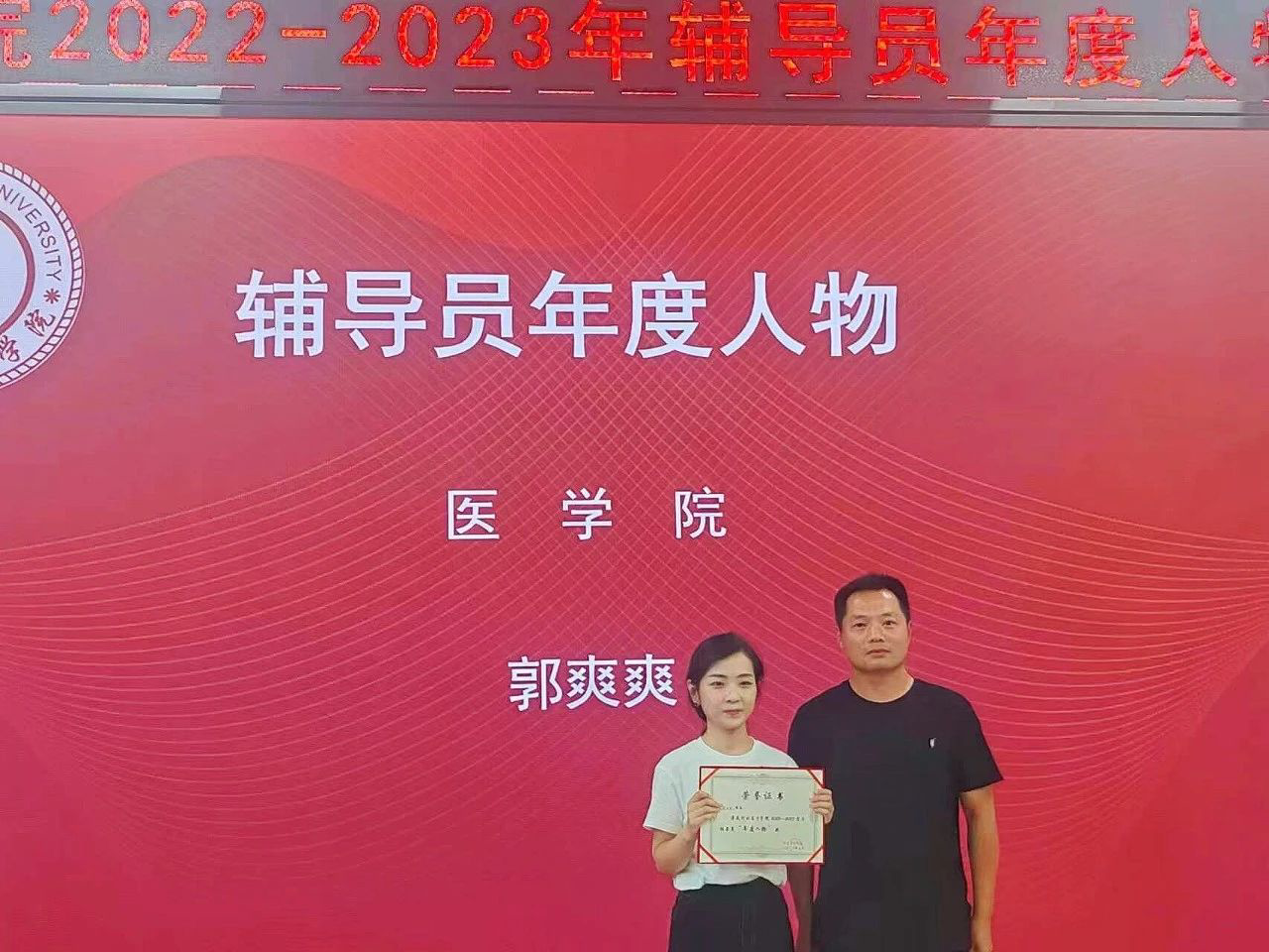 获得辅导员年度人物:医学院郭爽爽