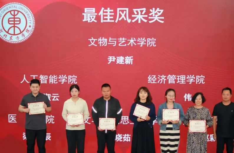 最佳风采奖:文物与艺术学院尹建新、人工智能学院赵淑云、经济管理学院张伟、医学院梁辰、人文与马克思主义学院刘晓茹、文物与艺术学院赵彩云