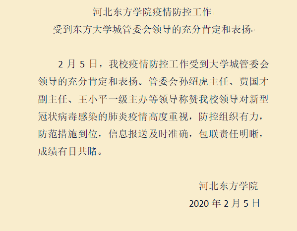 环球ug登录网站疫情防控工作 受到东方大学城管委会领导的充分肯定和表扬