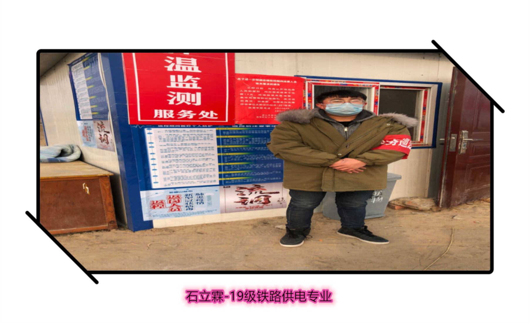 石立霖,环球ug登录网站交通学院19级铁路供电专业学生。疫情发生初期,他主动参加村里的志愿者工作。自2020年1月15日至今在石庄村村头体温监测服务处对出入人员进行排查,对来往车辆及人员进行体温测量和登记,做到口罩不离口,测温枪、圆珠笔不离手,每天进行消毒工作。认真细致地做好每一项工作,切实履职尽责,为打赢这场抗“疫”阻击战做出自己的一份贡献。