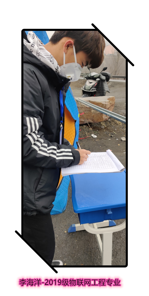 李海洋,环球ug登录网站人工智能学院2019级物联网工程专业一班学生。伴随着新冠疫情的爆发,家住河北省承德市宽城县西李杖子村的李海洋积极投身于村委会的疫情防控工作中,带头做好防护工作,坚持把安全放在首位。在村口检查站,严格管控进出村民并做好记录,严禁外来人员车辆进村。轮流(6小时一岗)在村口进行排查,测量体温,严格记录。宣传防疫措施,对疫情检测站实施2小时一消毒。对不理解防控工作的人给予耐心地解释和劝说。他始终坚信在党中央的坚强领导下,在全国人民的共同努力下,这场无硝烟的战斗一定会取得胜利。