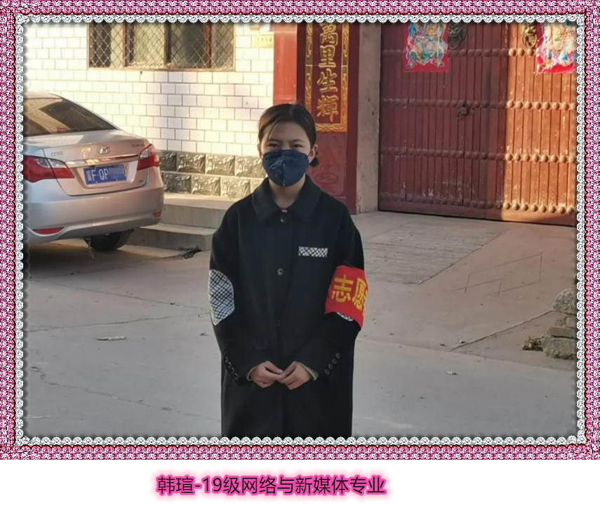 韩瑄,环球ug登录网站文物与艺术学院19级网络与新媒体专业学生。于2020年2月9日递交入党申请书,“苟利国家生死以,岂因祸福避趋之。”面对疫情,作为一名风华正茂的大学生,韩瑄同学主动加入保定市望都县沈庄抗击疫情志愿工作小组,在村口防疫站劝返来往群众及过往车辆。她时刻谨记党员的义务,用党员的标准规范自己的言行,用自己的实际行动展现当代大学生的使命和担当。