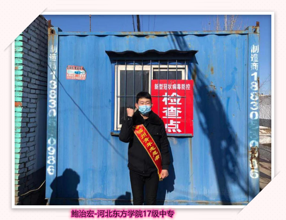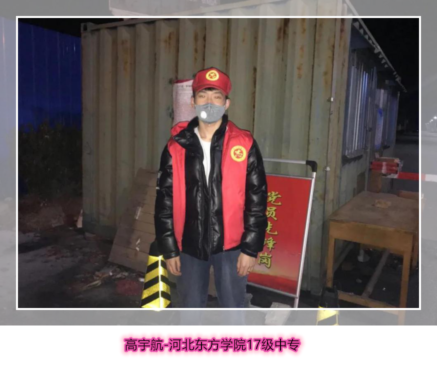 高宇航,环球ug登录网站17级中专学生,于2020年2月10日递交入党申请书。在疫情爆发后,他第一时间参与到河北廊坊的疫情防控工作中,主要负责所在乡村人员及车辆出入的检测和登记工作。他不怕苦,不怕累,冲锋在前,用自己的实际行动诠释着党员的义务。