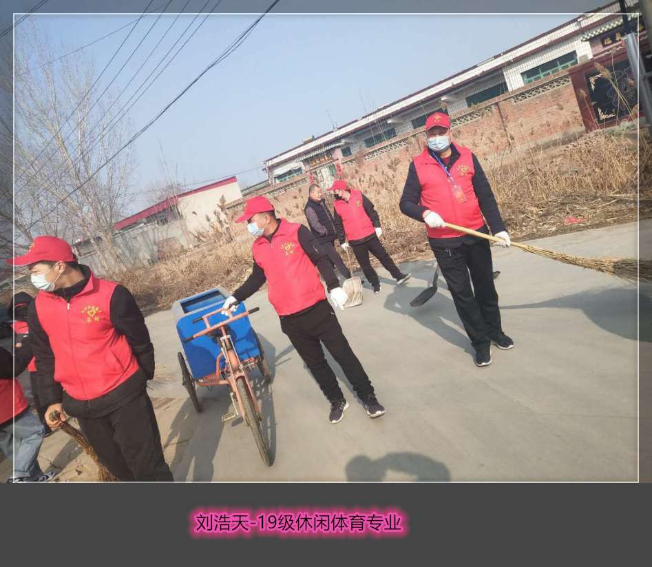 刘浩天,环球ug登录网站人文与马克思主义学院19级休闲体育专业学生。疫情爆发以来,他在保定市安新端村镇参加白洋淀志愿者服务工作,负责外来人员排查,测量体温,定时清扫街道卫生、喷洒消毒液等工作。在这场没有硝烟的战场上,身为一名当代大学生在关键时刻挺身而出,不忘自己的责任和担当,以实际行动,捍卫人民安全,在抗击疫情战中谱写新时代大学生的青春之歌!