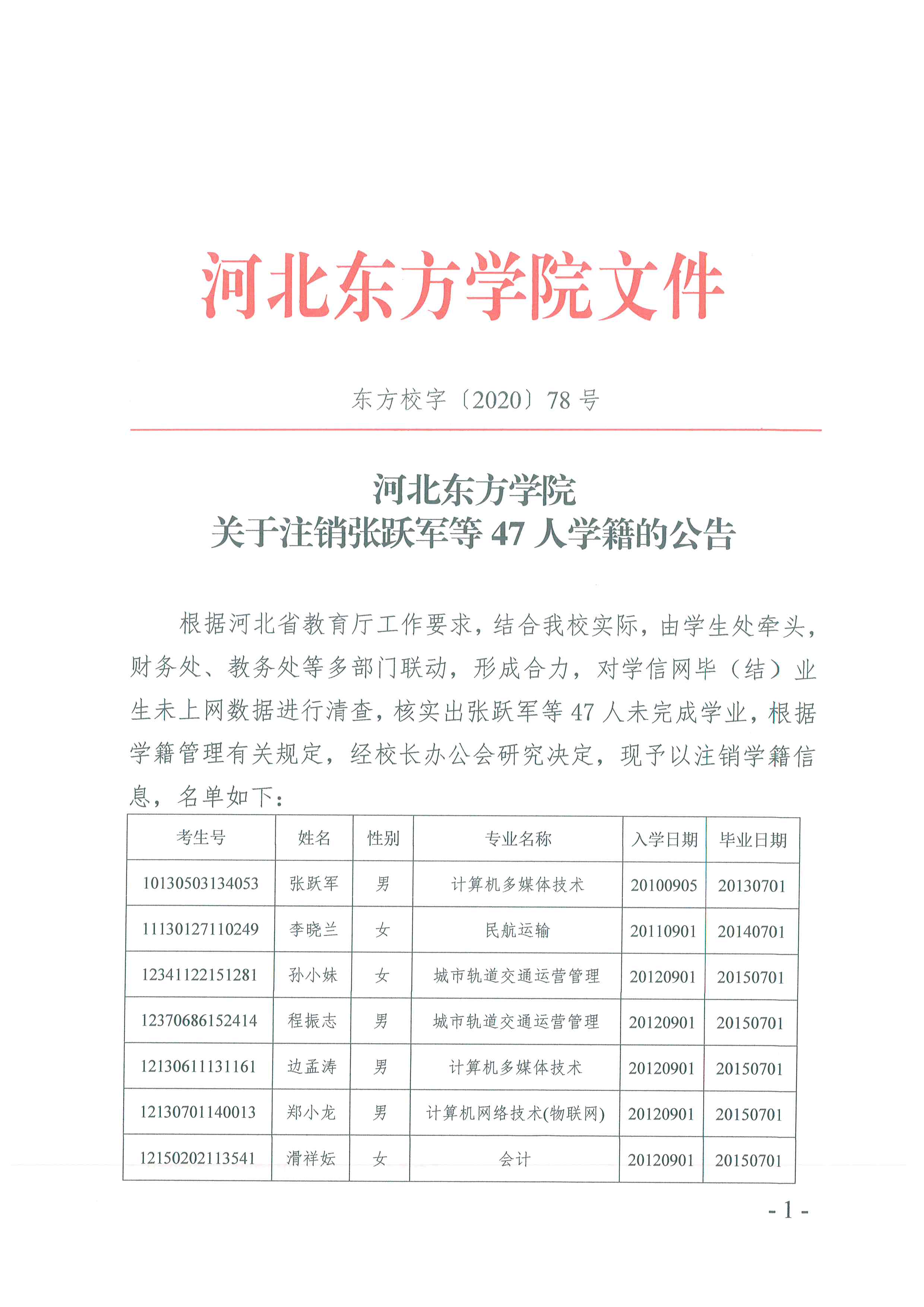 环球ug登录网站关于注销张跃军等47人学籍的公示