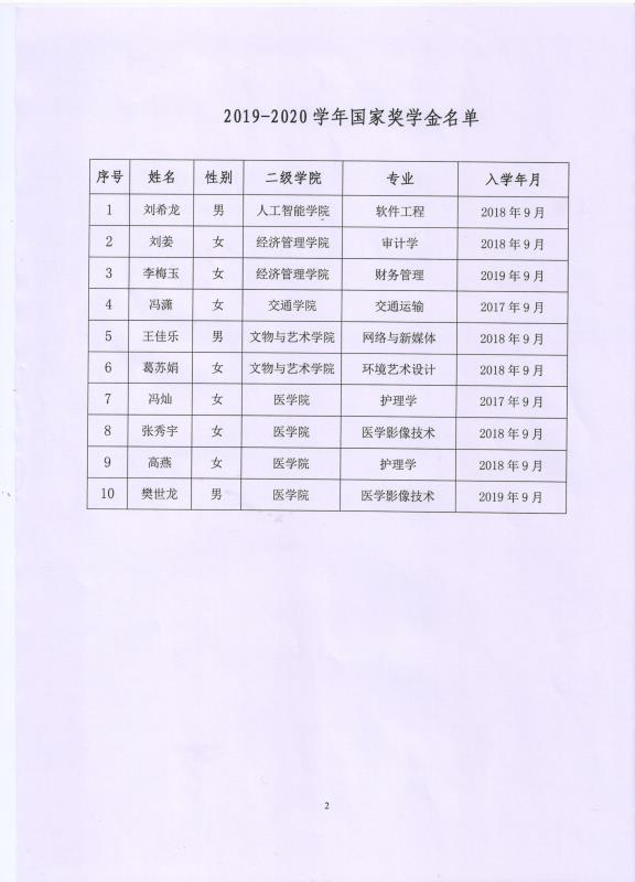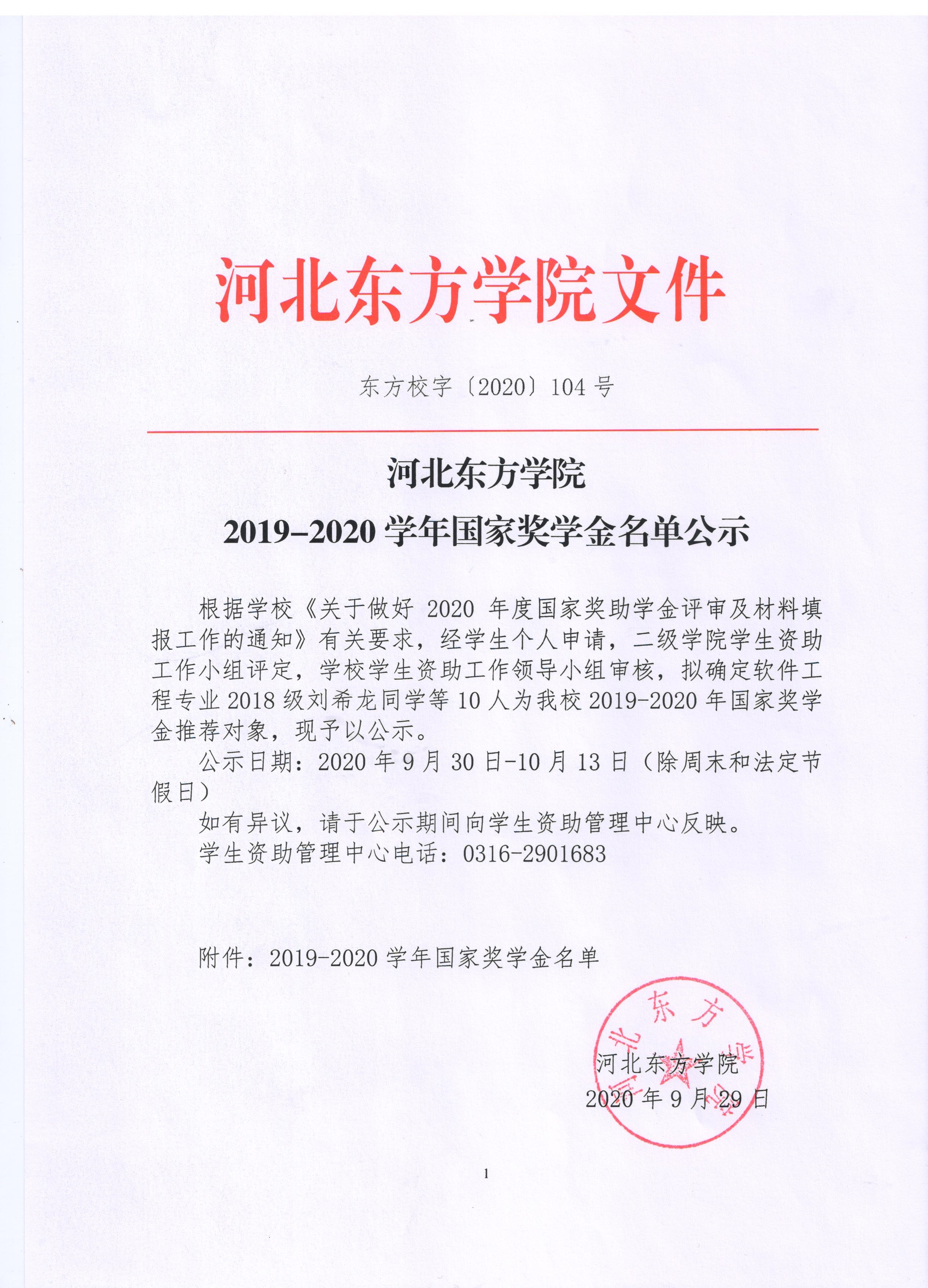 环球ug登录网站2019-2020学年国家奖学金名单公示