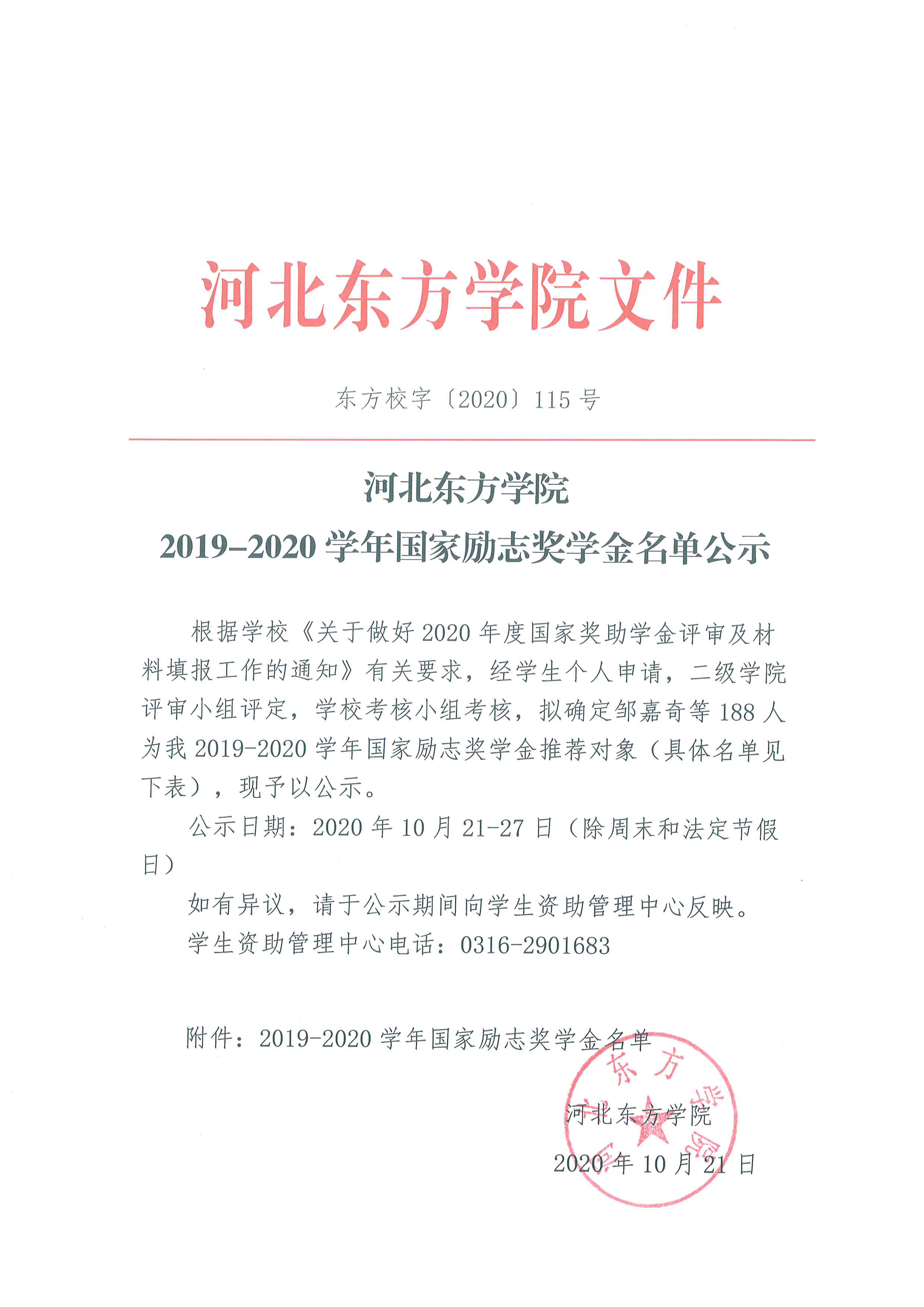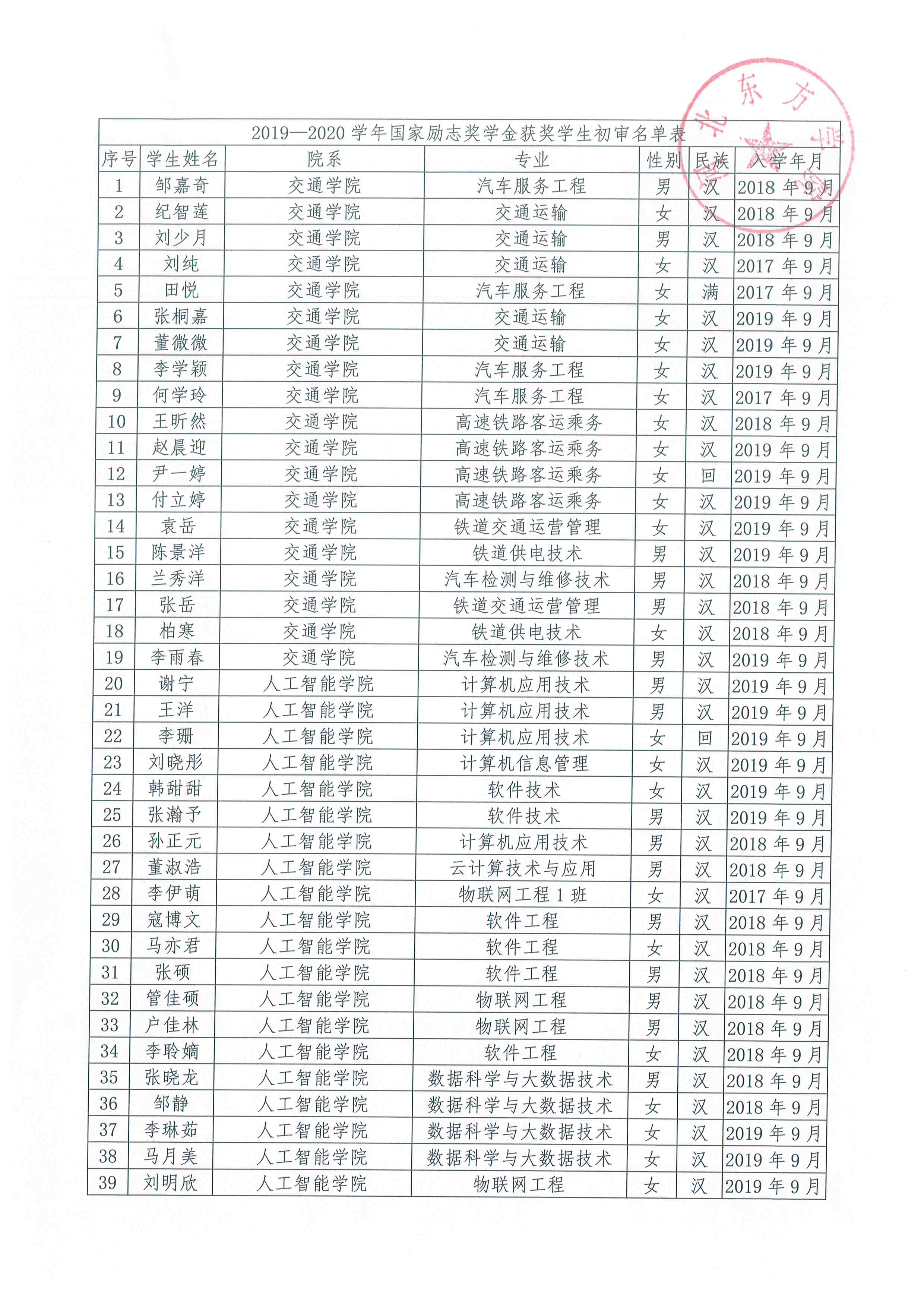 环球ug登录网站2019-2020学年国家励志奖学金名单公示