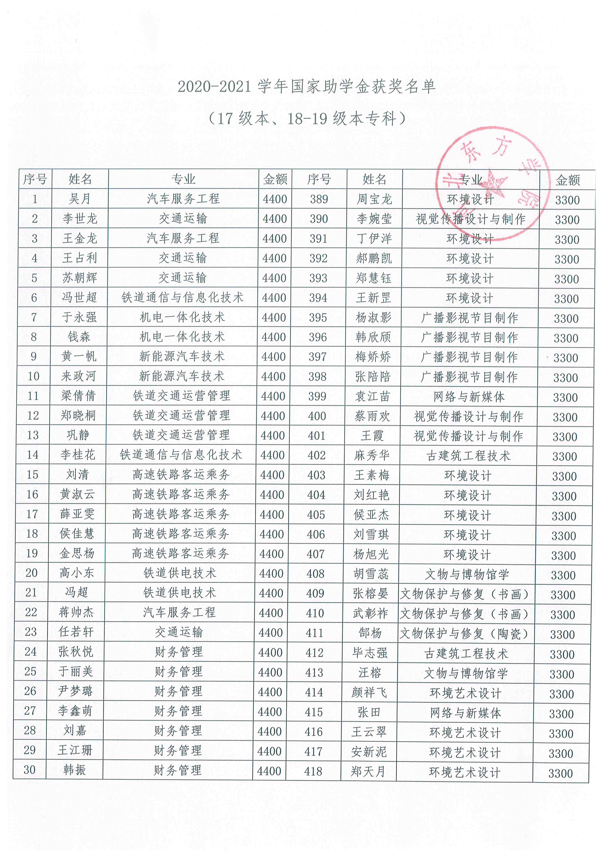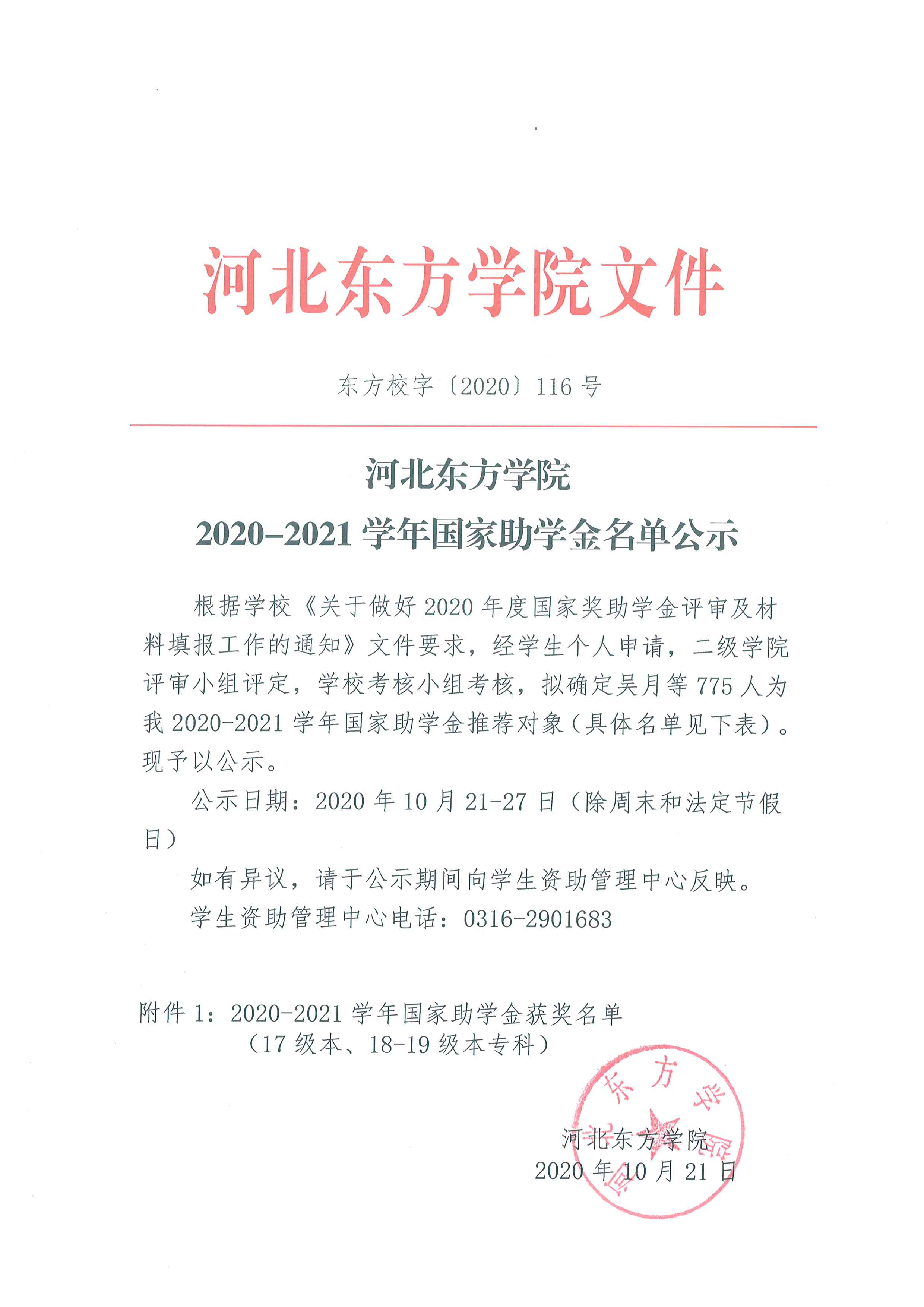 环球ug登录网站2020-2021学年国家助学金名单公示