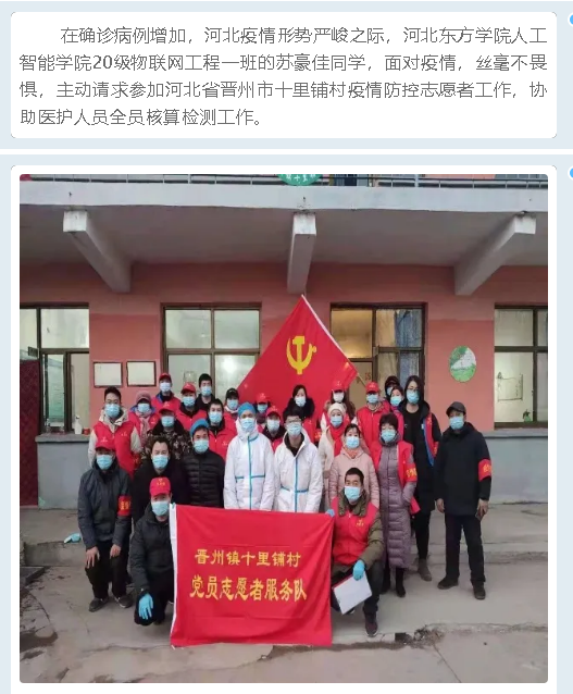 疫情当前,全国人民共抗疫情。河北是疫情高发地,我校学子不畏艰难积极响应社会号召,参加所在地的抗疫工作。面对疫情,我们毫不畏惧。