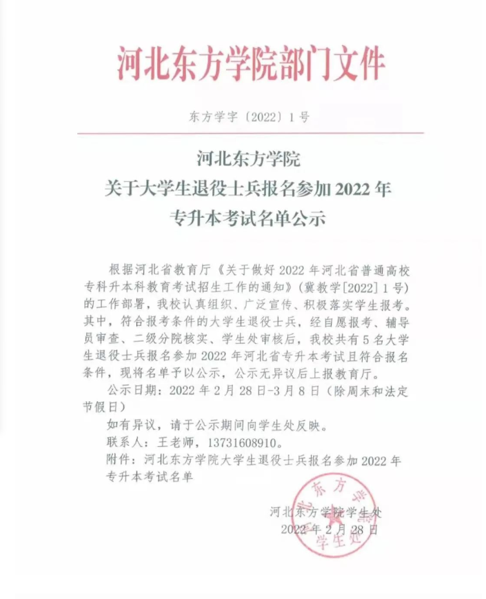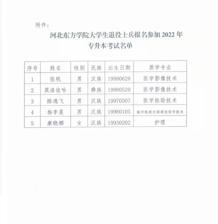 环球ug登录网站关于大学生退役士兵报名参加2022年专升本考试名单公示
