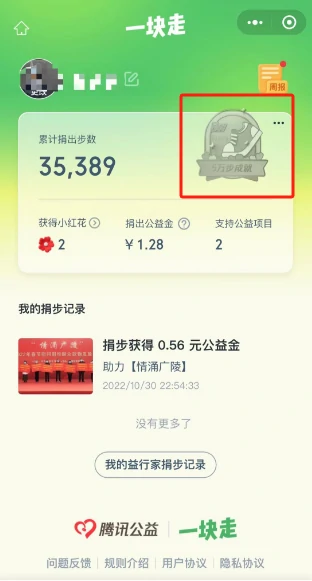 2.当日步数不小于6000步时,微信搜索“一块走”小程序点击进入,点击捐赠步数,即可捐赠当日步数并兑换为一定的公益金额。此外,捐赠步数兑换的小红花也可进行捐赠,献出自己的一份爱心。