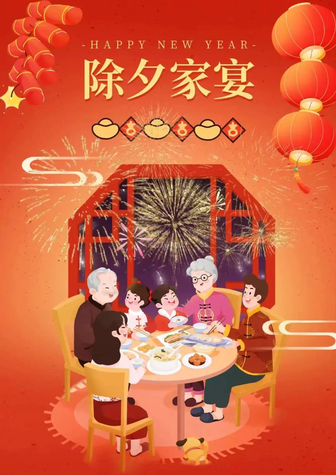 除夕的传统习俗丰富多彩,其中最具代表性的当属守岁、贴春联、放鞭炮、吃年夜饭等。守岁,即在除夕夜全家团聚,共度团圆之夜,寓意着长寿和福气。贴春联则是用红纸写上祝福语句,挂在家门两侧,以祈求来年吉祥如意。放鞭炮则是为了驱邪避邪,迎接新的一年。而年夜饭则是除夕最具特色的活动,一家人围坐在一起,共享美食,寓意团团圆圆。
