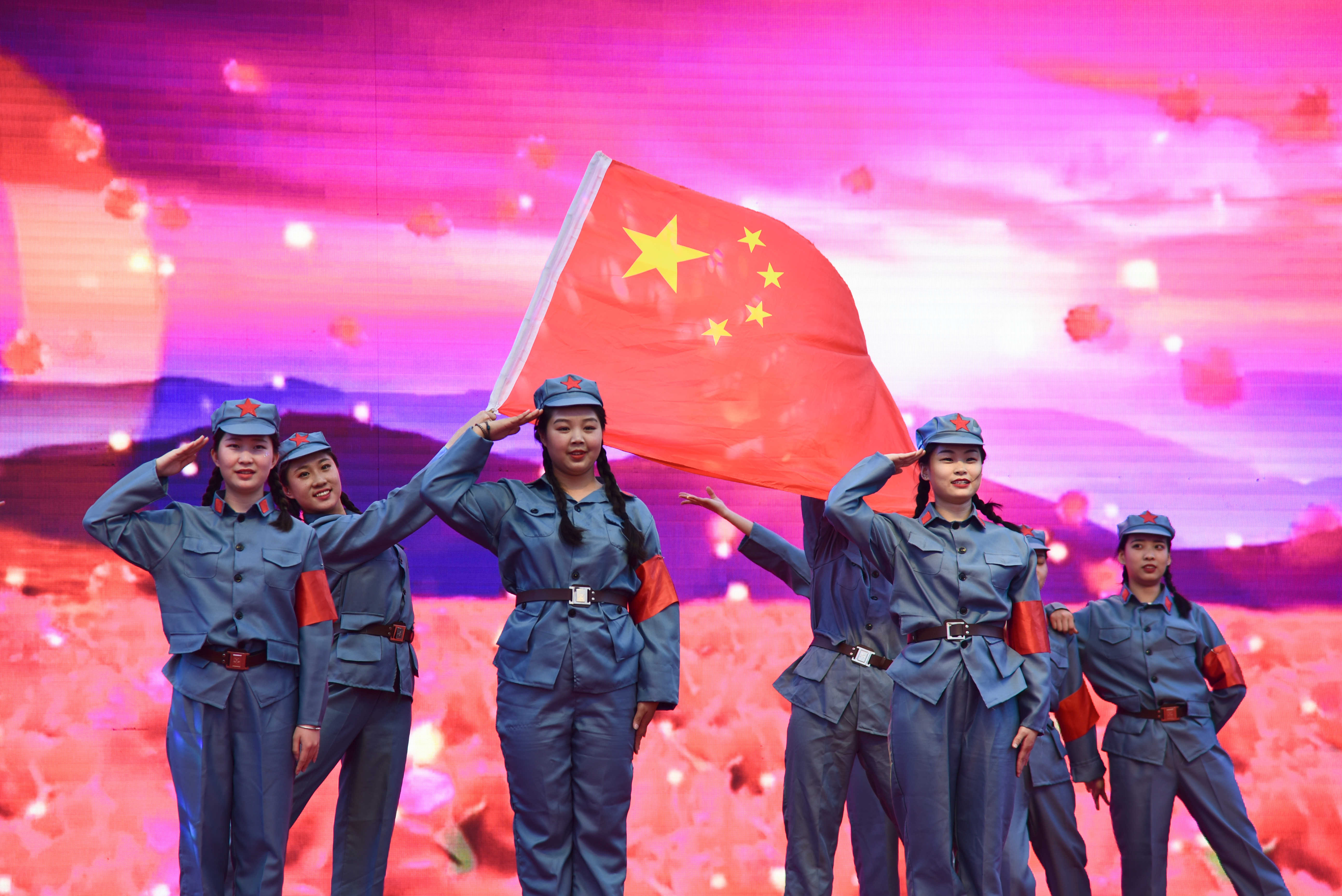 在开场的抢红包环节和开场歌舞后,开幕式第一篇章——“青春万岁,祖国有我”拉开序幕。干净利落的舞姿,展现着那个时代的舞蹈气息,舞动着自己的《芳华》;花有重开日人无再少年,在这最好如花一样的年纪,有这样一群仍显稚嫩的少年,在这空气稀薄的高原之上,将他们的青春献给了一份担当与一份责任,这就是广播站带来的朗诵《肩上的路,路上的魂》。