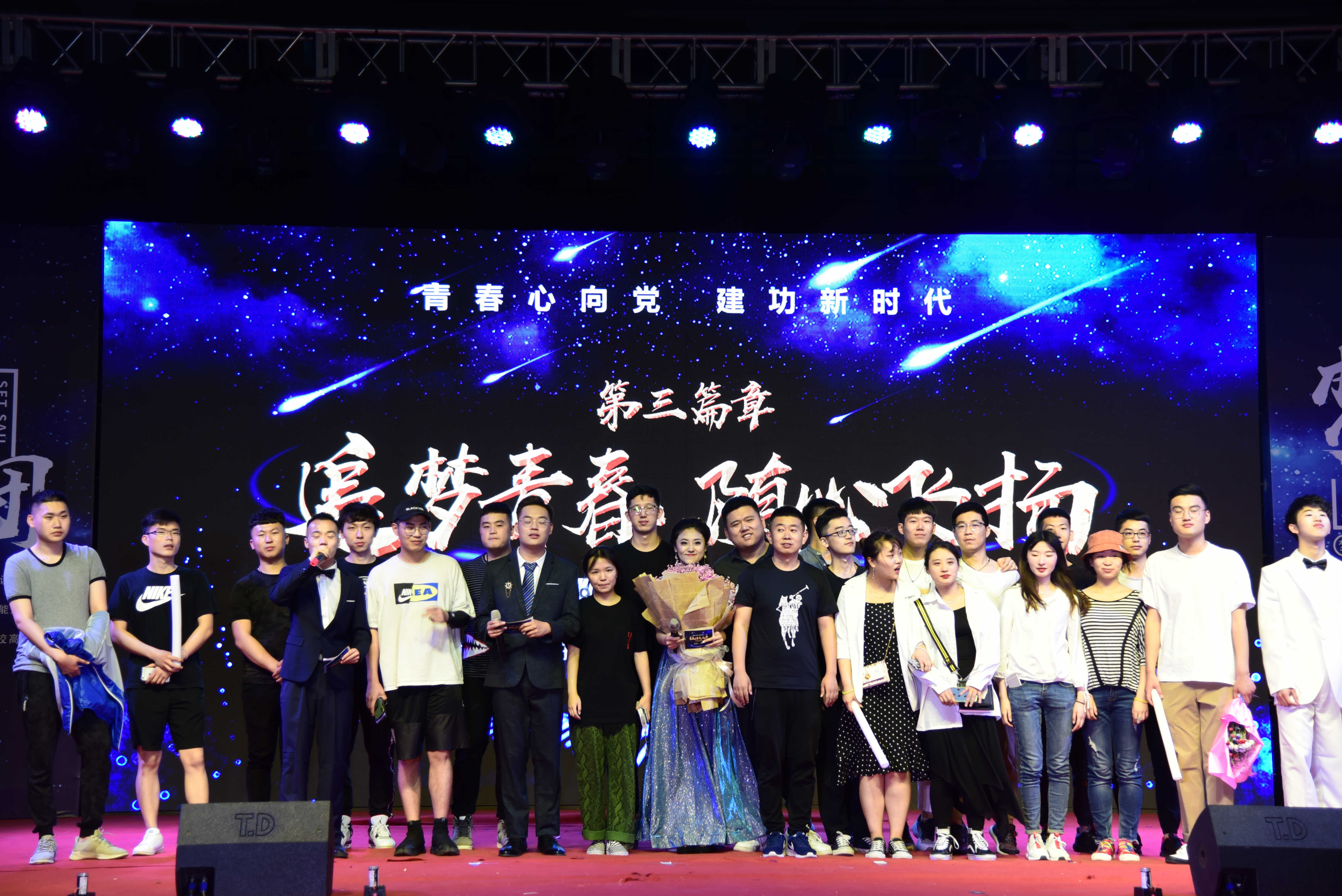 随后,进入了第二篇章——“青春有你,炫彩社团”。影艺社社长王荟丞和邵敬炎带来的爆笑相声《为什么我不火》引得现场欢呼不断,相信每个人都可以有自己的一片天空,都可以“火”起来,让我们有缘江湖再见;由动漫社小姐姐们带来的舞蹈《宵宵进酒》让激情澎湃在舞台;“云想衣裳花想容,春风拂槛露华浓”,由模特社带来的《丽人行》,随着悠悠的古风曲调,演绎出了诗一样的魅力和梦幻般的美,带来了一场视觉上的狂欢盛宴;街舞社带来的鬼步舞《梦》用激扬的舞步、跳动的音符诠释着他们活力四射的青春;常汗青的一曲《突然想起你》用动人的歌声,点燃了观众们的热情,带动起了全场的气氛,展现了他的精彩唱功。