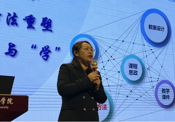 本次活动邀请延边大学郭艳春主任一行四人主讲。专家围绕“教案设计与撰写”,“课程思政元素挖掘”,“教学课件制作”,“教学策略方法运用”四个主题展开讲座,结合我校教学实际与教师们进行了深入探讨和交流。