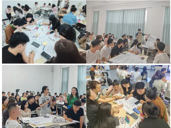 培训过程中,通过破冰小游戏、视频影片的播放讲解、学情便利贴、教学微型设计展示、小组互评等活动,调动大家积极性,教师们积极参与,学习热情高涨。同时也展现了青年教师团队合作精神和向上的学习态度。
