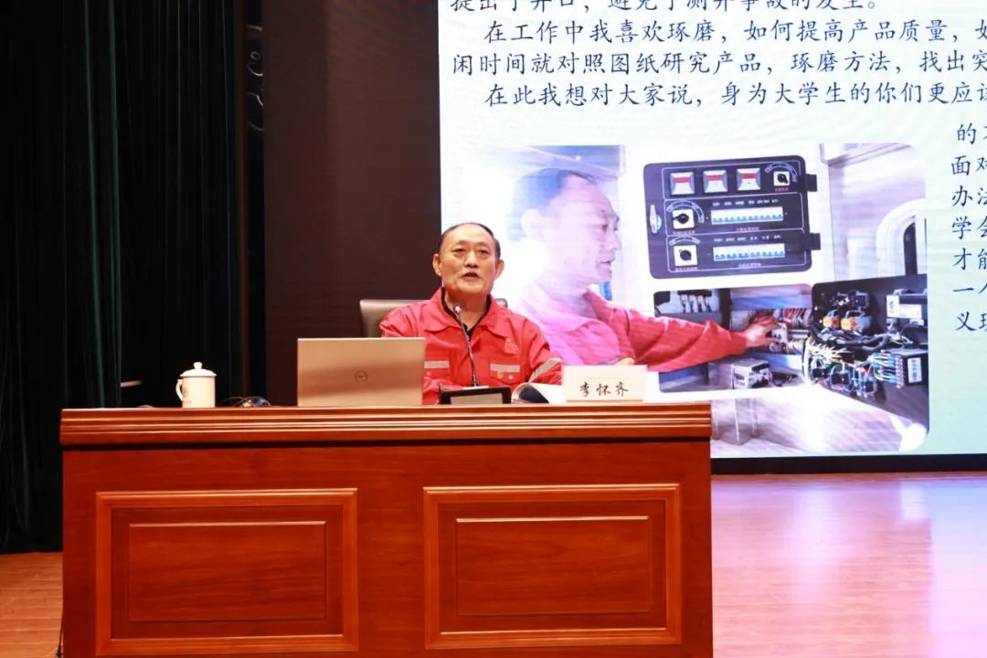 报告会上,李怀齐、杨圆明同志分别就自身经历和劳动故事与师生代表面对面畅谈劳动心声,用朴实的语言、生动的事例分享了他们从普通工人、一线科技工作者成长为劳模的心路历程。他们的话语中充满着对党对祖国对家乡的深厚感情,充满着劳模对事业、对社会的厚重责任,充满了他们人生成长的许多感悟,充满了对青年大学生的关爱,与会师生深受教育、深受感动。