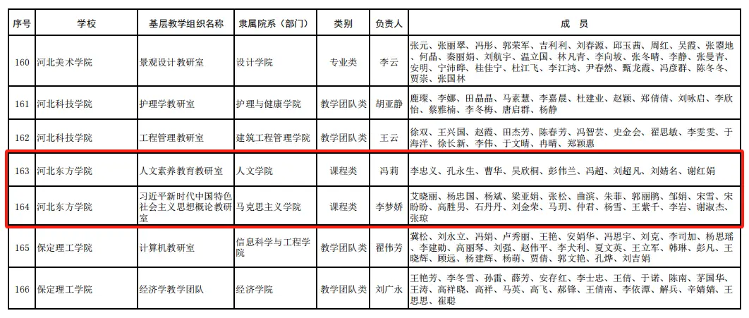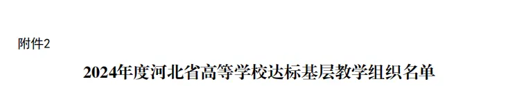 近日,河北省教育厅发布《河北省教育厅关于公布2024年度河北省高等学校优秀和达标基层教学组织名单的通知(冀教高函〔2024〕60号)》,我校人文素养教育教研室、习近平新时代中国特色社会主义思想概论教研室获评河北省高等学校优秀基层教学组织,金融教研室等18个教学组织被认定为河北省高等学校达标基层教学组织,至此,我校省级优秀基层教学组织达到4个,省级达标基层教学组织达到49个。