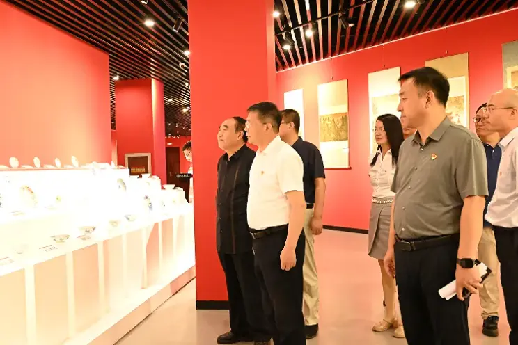 签约仪式结束后,学校副校长王振武、党委副书记潘冲陪同北华航天工业学院党委书记郝玉龙一行参观走访了我校文物艺术学院、数字传媒学院等教学科研场所、党建活动阵地等。