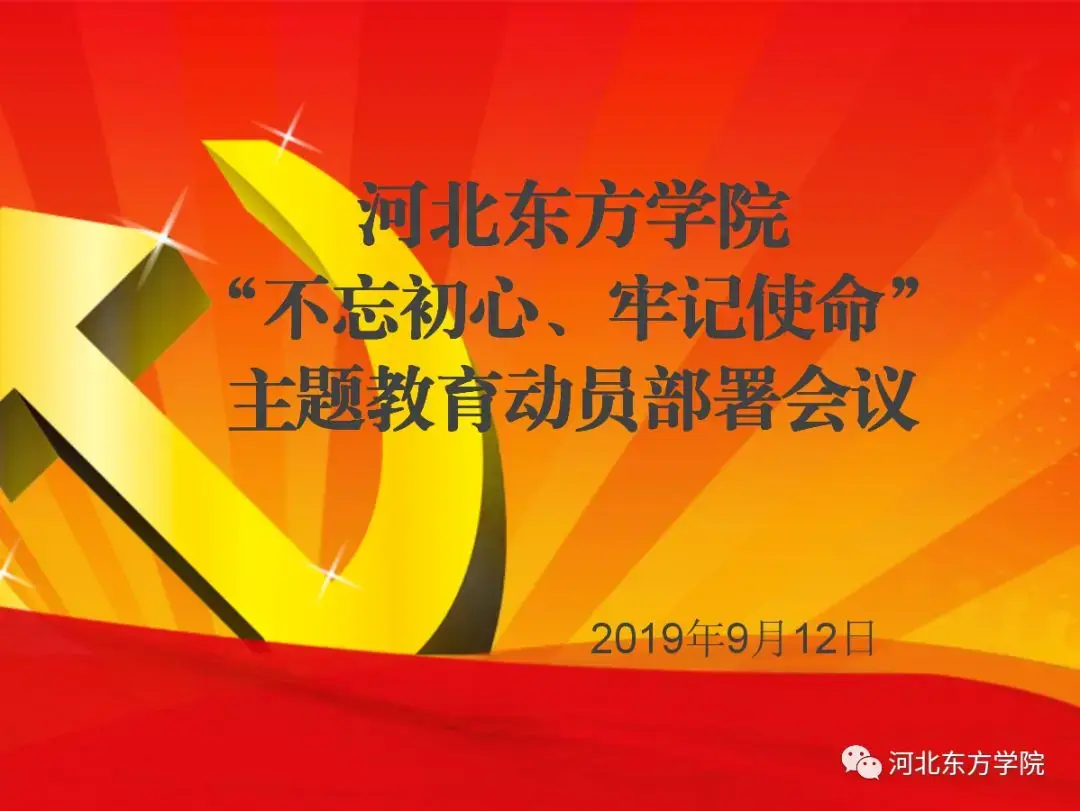 2019年9月12日下午,我校党委按照上级党委部署召开“不忘初心、牢记使命”主题教育动员部署会议。8个党支部的书记及支部委员参加会议。