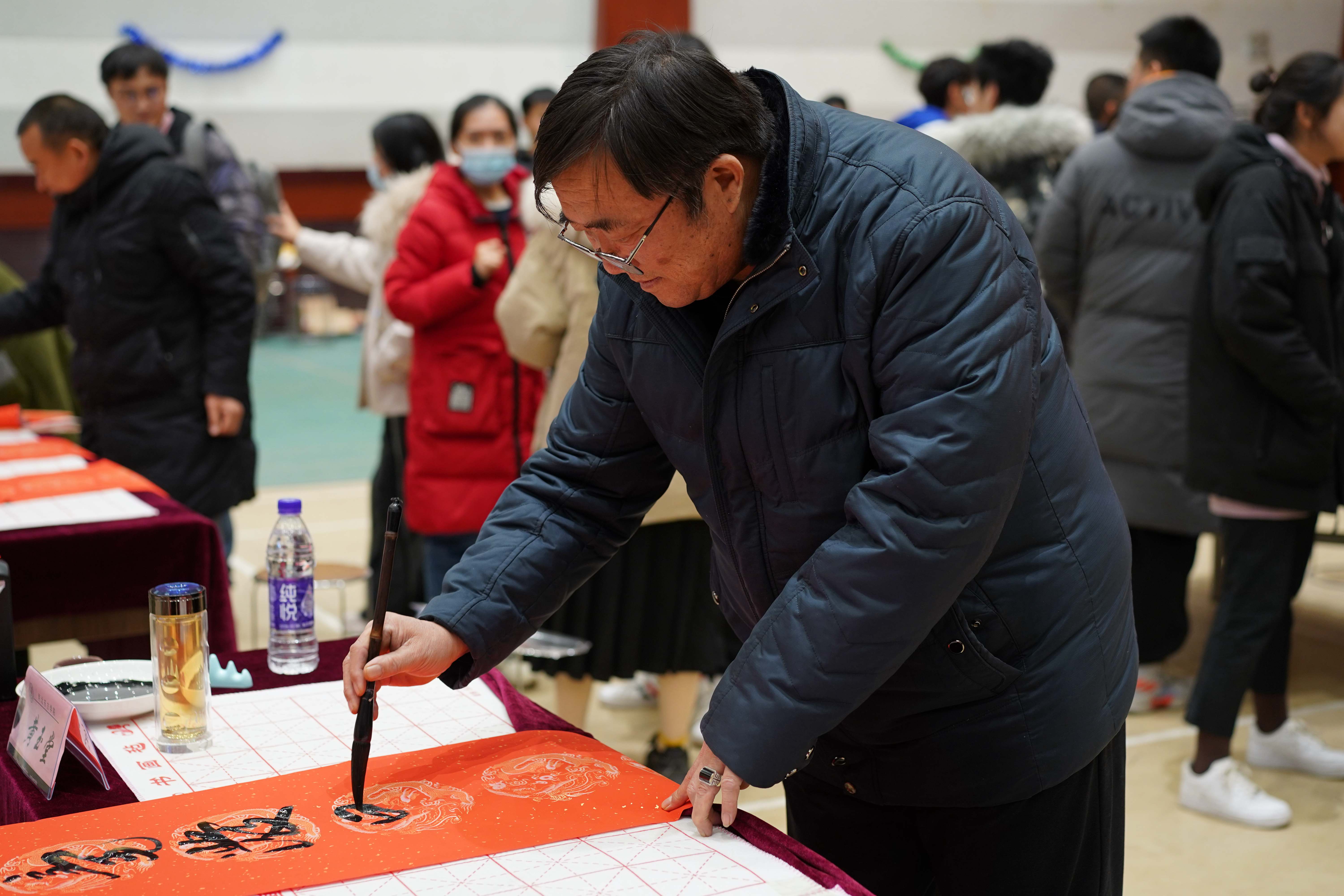 妙笔生花送祥瑞,翰墨留香迎新春。为喜迎新春佳节,在学校营造欢乐、祥和、喜庆的节日氛围,我校于12月16日下午在B区体育馆二楼演播大厅举办“迎新春,谢师恩,送春联”春联派送活动。本次活动特邀我校黄玉堂教授、付明正教授、贾立龙教授、杨娟教授、张悦潇老师等知名书画名家带领他们近百名书法弟子为全校到场师生进行春联书写,在吕一枚校长带领下,学校党政领导班子全体也到场热情参与其中。