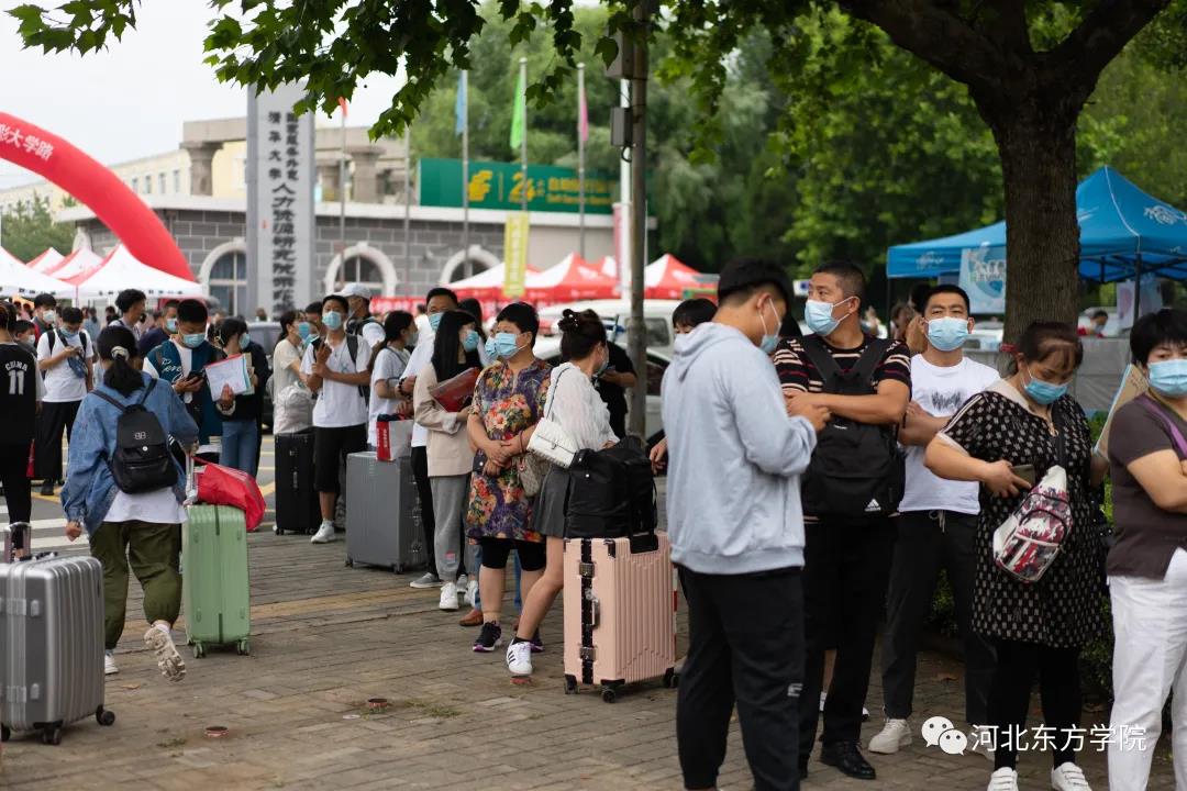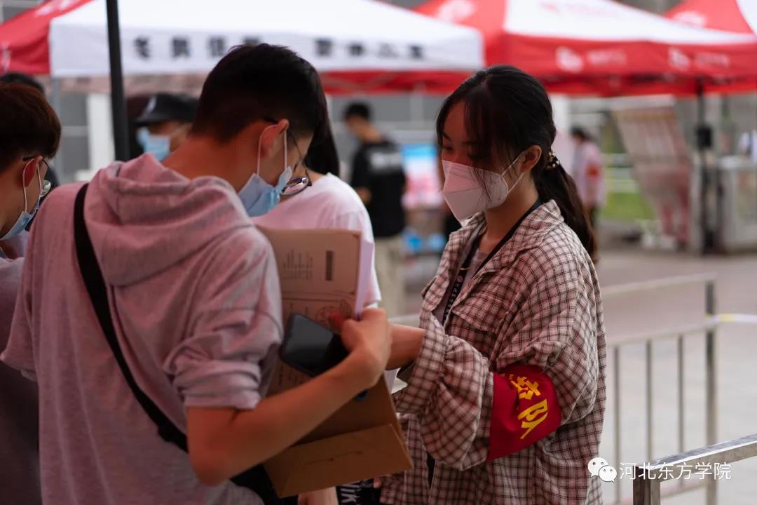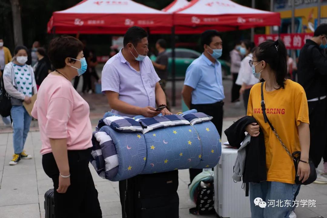 为保证迎新工作的平安有序,新生家长无法将孩子送进校园,只能送至校门口,由学生志愿者帮助新生前往报到地点。根据常态化疫情防控需求,入校前,新生有序在学校门口完成体温检测、扫码登记、出示健康码和核酸报告。