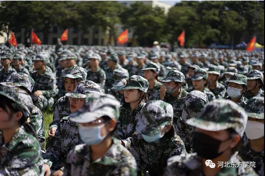 在庄严的国歌声中,军训动员大会正式拉开了帷幕。医学院贺子晔同学作为新生代表发言,她号召同学们服从纪律,坚韧挺毅,尽快融入集体,不断进步,向大家展示出焕然一新、斗志昂扬、勇于攻坚克难的大学生精神风貌。