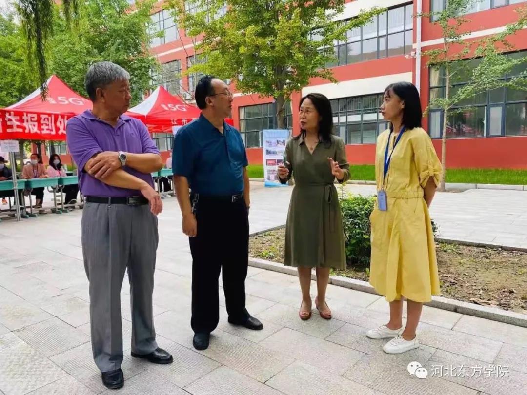 吕一枚校长、刘文根书记在医学院领导陪同下在我校C区检查迎新现场布置安排情况。