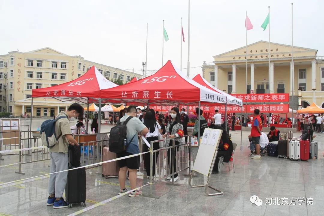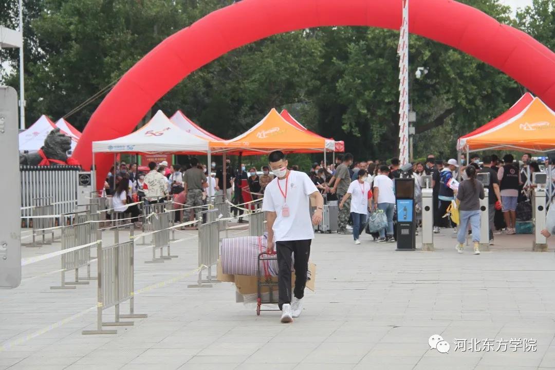 “请同学们间隔一米,有序排队办理报道手续”,现场有条不紊、秩序井然。各学院迎新处、引导站、志愿服务站早已准备就绪,相关工作人员和志愿者们笑容满面、以心迎新,热情周到的服务让新生倍感温暖。
