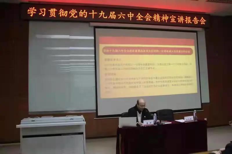 潘冲副书记从深刻认识总结党的百年奋斗重大成就和历史经验的重大意义,深刻认识党的百年奋斗的初心使命和重大成就,深刻认识中国特色社会主义新时代的历史性成就和历史性变革,深刻认识党的百年奋斗的历史意义和历史经验,深刻认识以史为鉴、开创未来的重要要求,从党的百年奋斗历程中汲取智慧和力量等六个方面系统宣讲了十九届六中全会精神,宣讲报告主题鲜明、脉络清晰、系统全面、内容丰富,对教职工党员深入学习贯彻党的十九届六中全会精神具有重要指导意义。