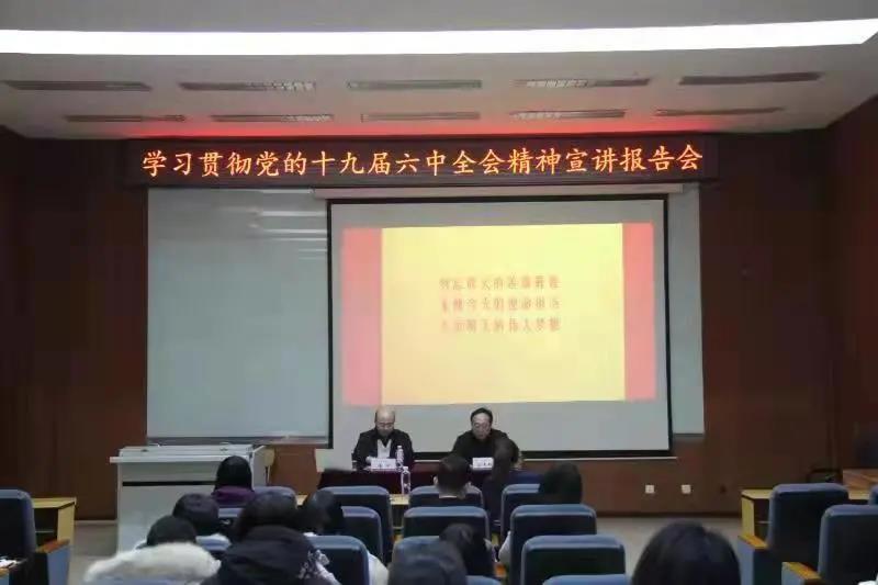 为深入学习宣传贯彻党的十九届六中全会精神,12月15日下午,我校举行学习贯彻党的十九届六中全会精神宣讲报告会。党委书记刘文根主持宣讲会,副书记潘冲做宣讲报告,全体教职工党员参加报告会。