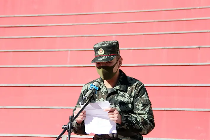 教官代表于源开发言中表示,军训是同学们入学的第一课,更是同学们经风雨、见世面、长才干的重要途径。军训教官要一切从自我做起,以良好的形象、饱满的精神状态与良好的军人形象做表率,与同学们一起圆满完成军训任务。